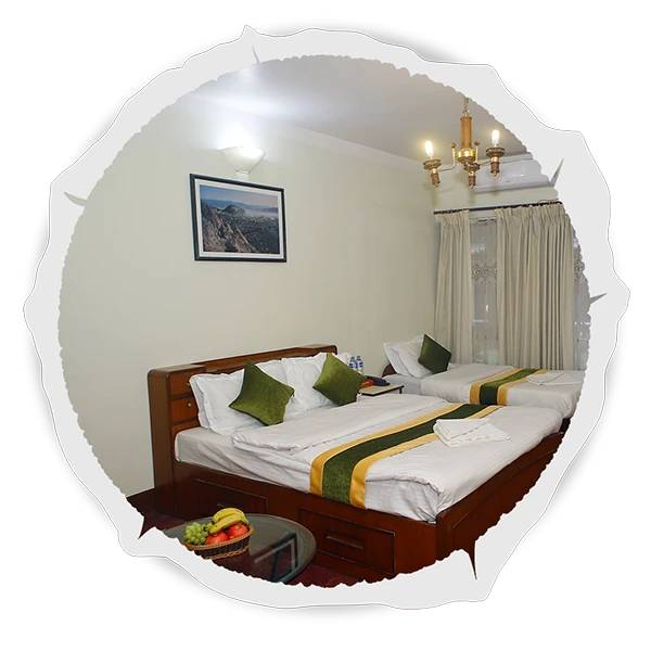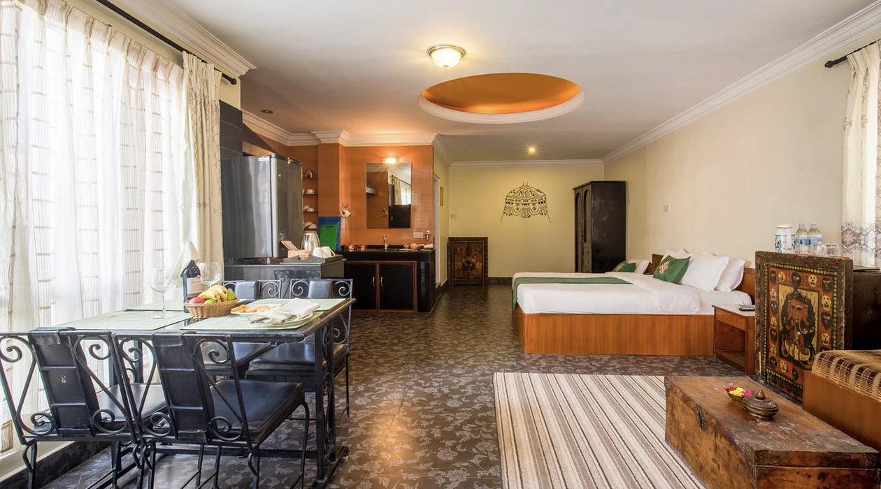 Situated in a picturesque location, opposite the peaceful Pipalbot greenery area with a small garden, and just a 3-minute walk away from the UNESCO world heritage site of Bouddhanath Stupa. The hotel is conveniently located 3 km away from the international and domestic airport, and is also in close proximity to other important landmarks such as the Kathmandu Durbar Square, Swayambhunath Stupa, and Pashupatinath Temple. The hotel offers a unique Tibetan cultural experience, with a warm and hospitable family atmosphere, along with tastefully decorated rooms featuring antique furnishings and traditional decor. The hotel offers 22 non-smoking air-conditioned rooms, including deluxe, super deluxe, triple and apartment rooms, all equipped with high-speed Wi-Fi internet access. The hotel also boasts a multi-cuisine restaurant called "Sakhāng", serving a selection of Continental, Indian and traditional Nepali food, as well as a bar called "Madirabar", which offers a range of imported hand-picked wines, domestic and international whiskies, and expertly prepared cocktails.