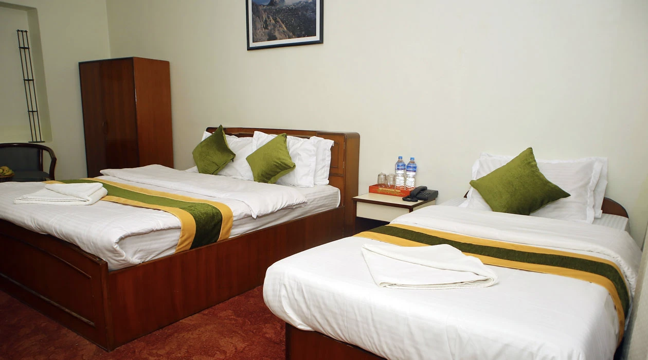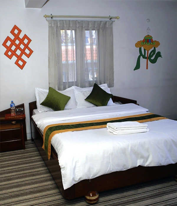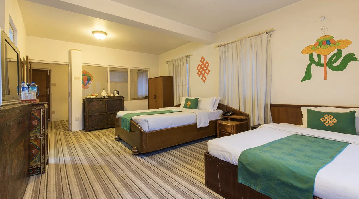 Situated in a picturesque location, opposite the peaceful Pipalbot greenery area with a small garden, and just a 3-minute walk away from the UNESCO world heritage site of Bouddhanath Stupa. The hotel is conveniently located 3 km away from the international and domestic airport, and is also in close proximity to other important landmarks such as the Kathmandu Durbar Square, Swayambhunath Stupa, and Pashupatinath Temple. The hotel offers a unique Tibetan cultural experience, with a warm and hospitable family atmosphere, along with tastefully decorated rooms featuring antique furnishings and traditional decor. The hotel offers 22 non-smoking air-conditioned rooms, including deluxe, super deluxe, triple and apartment rooms, all equipped with high-speed Wi-Fi internet access. The hotel also boasts a multi-cuisine restaurant called "Sakhāng", serving a selection of Continental, Indian and traditional Nepali food, as well as a bar called "Madirabar", which offers a range of imported hand-picked wines, domestic and international whiskies, and expertly prepared cocktails.